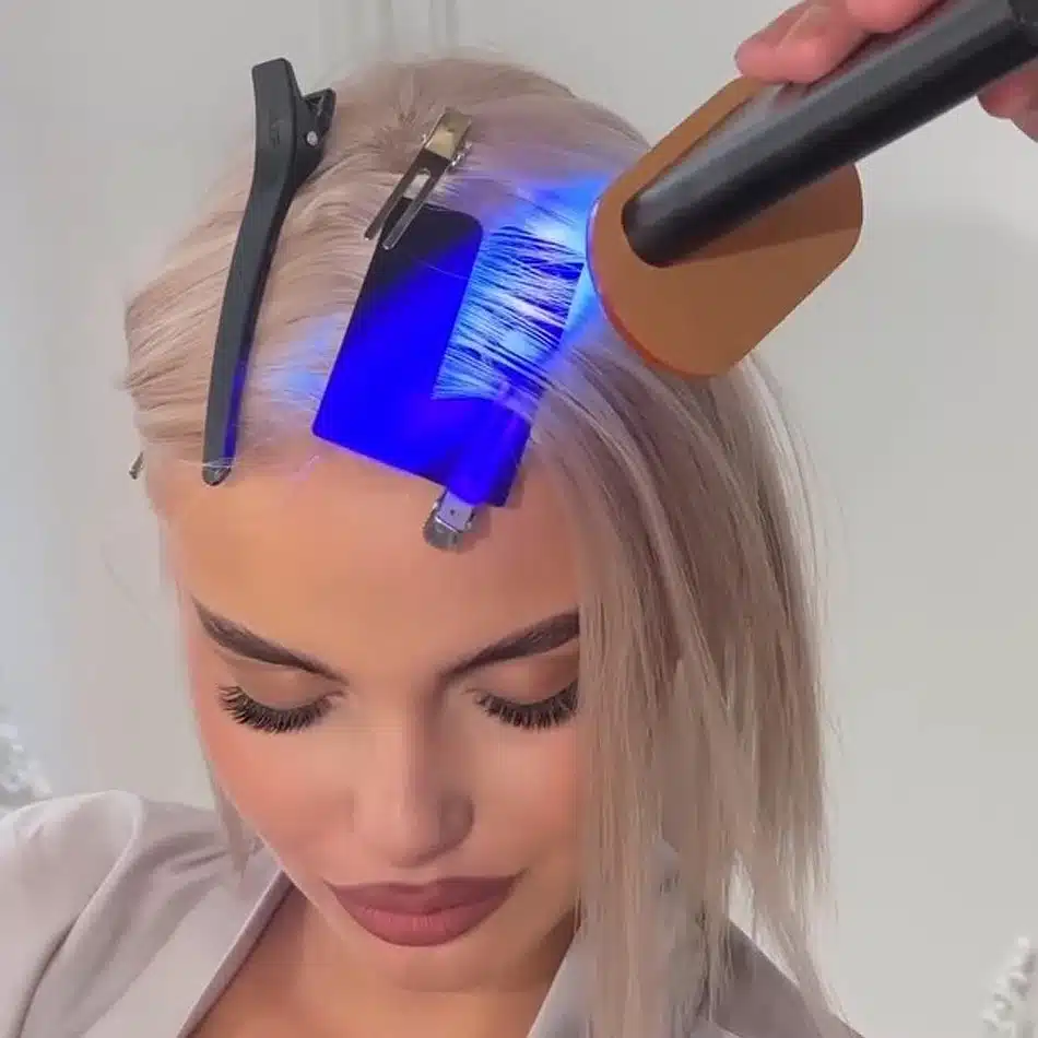 Il s'agit d'une méthode de pose avant-gardiste qui utilise une résine spécifique, activée par une lumière froide, pour fixer les extensions mèche par mèche. Cette approche permet d'obtenir des points de fixation d'une finesse remarquable, totalement imperceptibles à la vue comme au toucher. Le confort est tel que cette solution est parfaitement adaptée, même sur des cheveux très fins.
